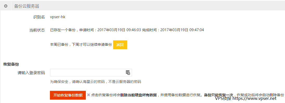 VPS可以一键备份和一键恢复都是很需求的功能!
