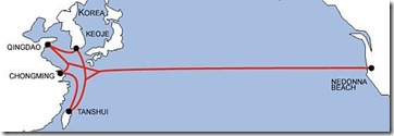 陆点为俄勒冈州的Nedonna沙滩。两条光缆均已开通商用,但从目前我多次traceroute的结果来看,TPE似乎还没有向一般宽带用户开放。中美之间的带宽增长速度相当惊人,根据CNNIC的统计数据,截至2008年底中国电信与美国之间的带宽为203980MB,而中国网通为110456MB.目前中国电信在北美西海岸的节点有华盛顿州的西雅图,加州的圣何塞,洛杉矶和帕拉阿图。